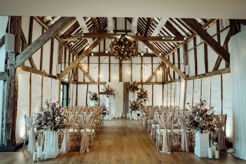 The ceremony setup we viewed was arranged for more than 100 guests, yet it still felt intimate and cosy, a real testament to how a South Downs wedding venue can balance scale with warmth.