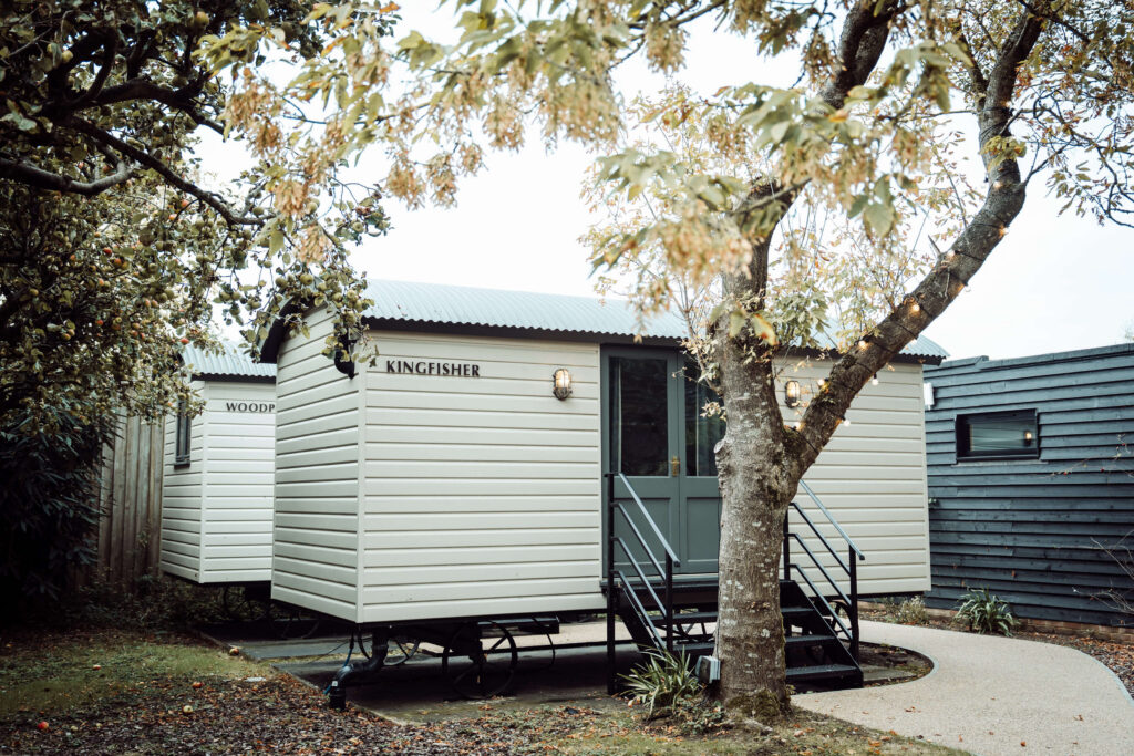 Yes, the venue offers several accommodation options including shepherd’s huts and a honeymoon cottage.